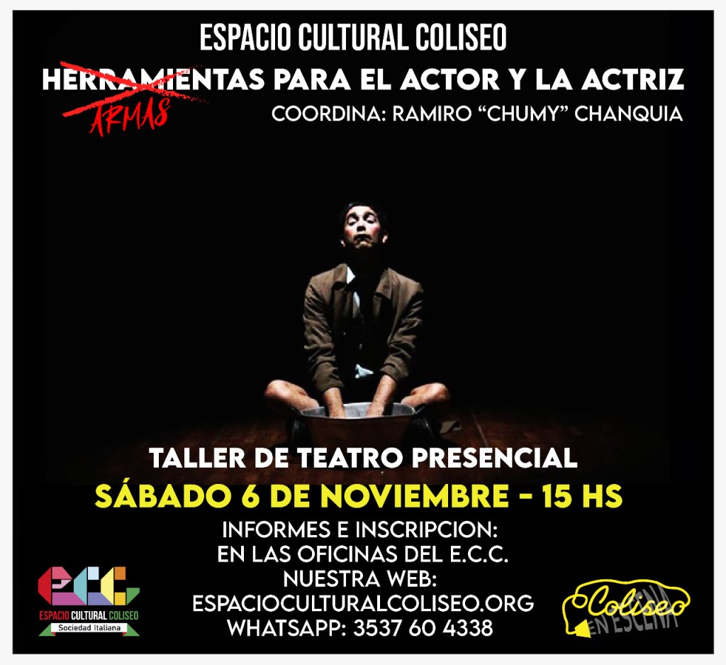 TALLER «Herramientas (Armas) para el actor y la actriz» dictado por “El Chumy” Ramiro Chanquía. Miembro de TRÍO MAL DE AMORES. Con la obra «COVERsación entre Tres» ganaron el Premio Carlos 2020.