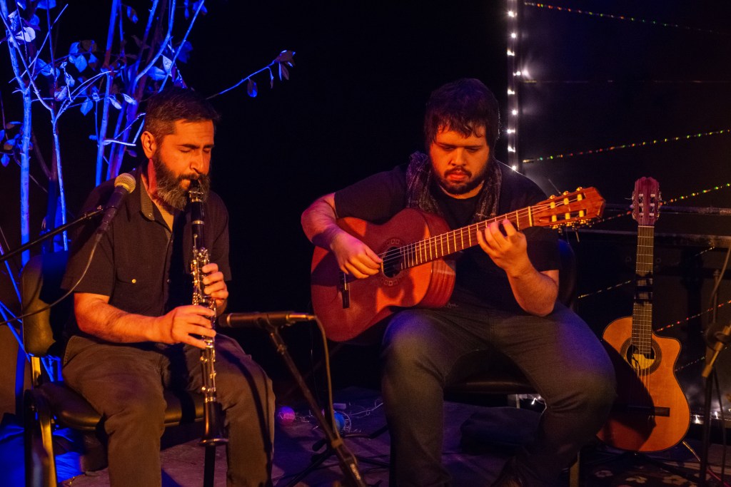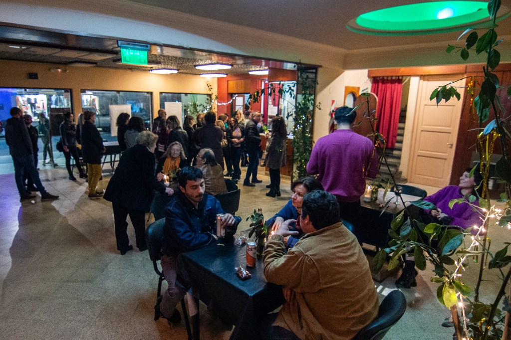 El aquelarre siguió en el hall del Teatro compartiendo el servicio de bar y celebrando un nuevo encuentro artístico que contó con la producción general del Espacio Cultural Coliseo, sonido de Ezequiel González y luces de Lucas Viscovig.