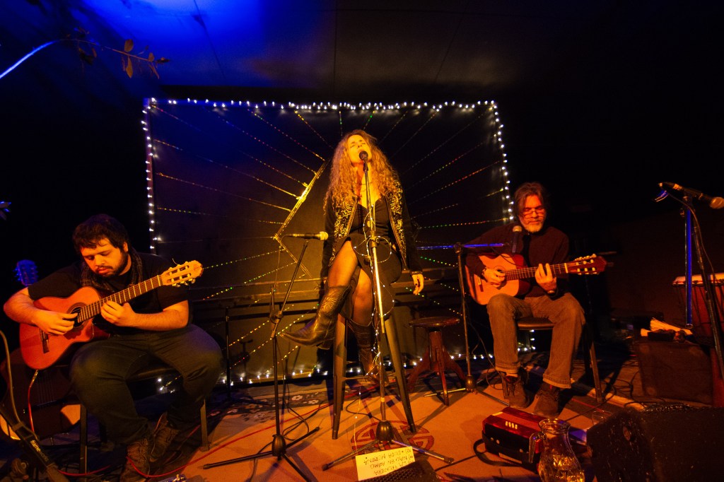Marcela Orge, en formato acústico, fue protagonista en el inicio del ciclo Aquelarre, con un hermoso marco de ambientación y público en la sala La Tertulia. En el concierto, la cantautora presentó un recorrido por canciones latinoamericanas y de otras latitudes con reminiscencias gitanas.