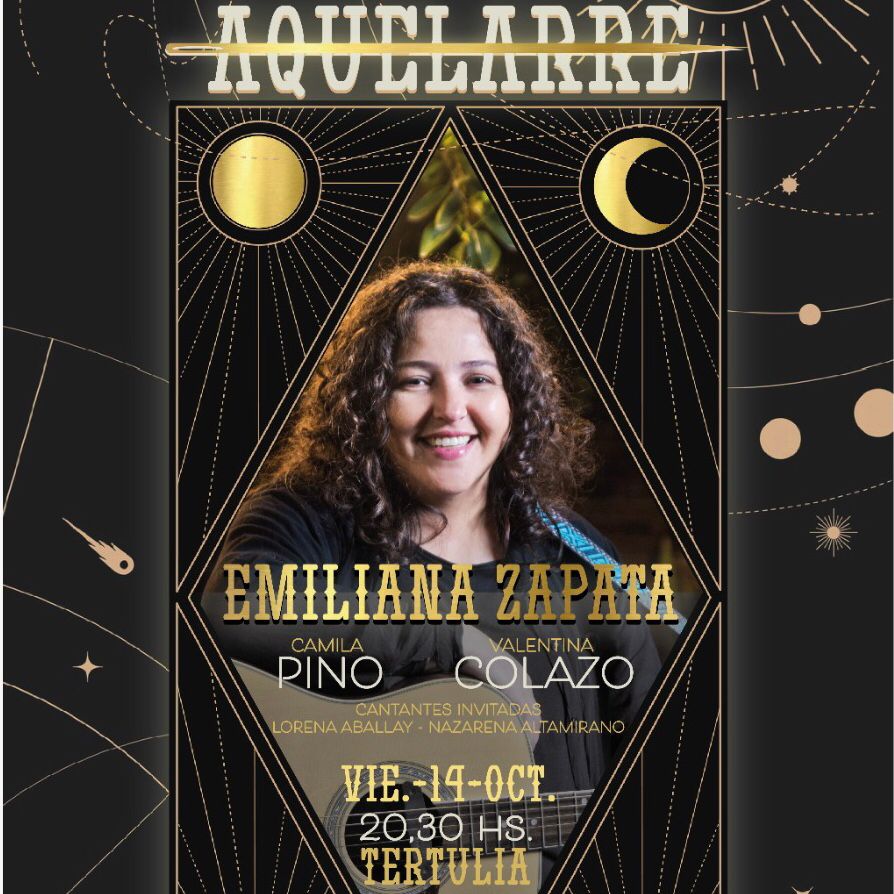 El viernes 14 de octubre,a las 20:30, se presenta en La Tertulia del Teatro Coliseo la cantante Emiliana Zapata, dando continuidad al ciclo “Aquelarre” que produce el Espacio Cultural Coliseo, para dar lugar en la escena local a cantantes, autoras e intérpretes.