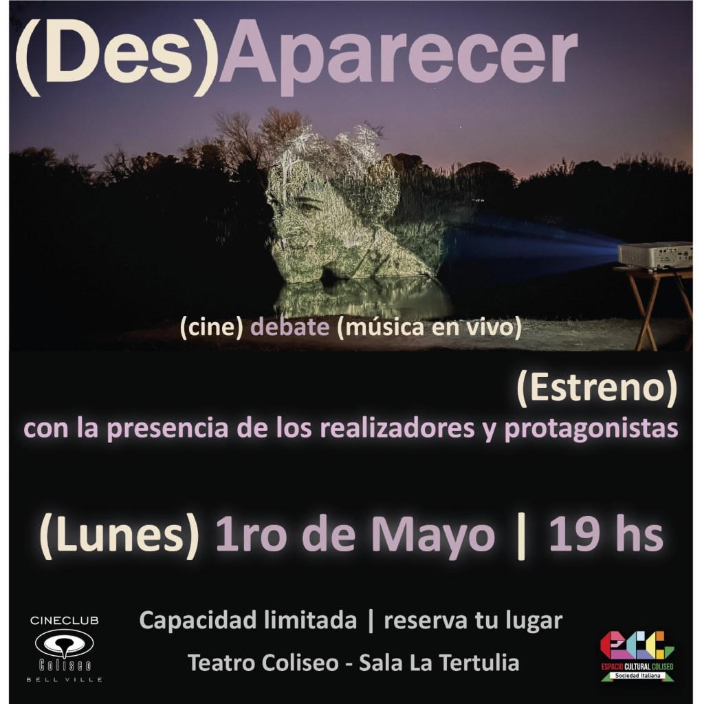 El 1 de Mayo se presenta el documental (Des) Aparecer producido y dirigido por Piotr Cieplak (Reino Unido) y guionado por Mariana Tello Weiss (Córdoba), que tiene como protagonistas a les bellvillenses Ana Iliovich, sobreviviente de la última dictadura militar, y Gabriel Orge, artista visual. El estreno será a las 19, en la sala La Tertulia del Teatro Coliseo, con entrada gratuita y reserva previa.