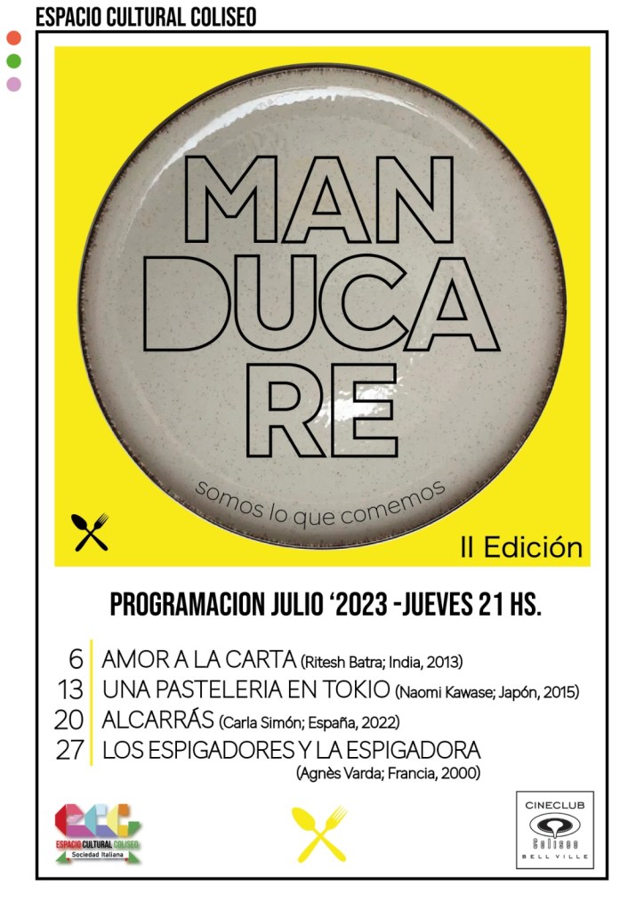 El ciclo comienza con una película de la India, con un entramado de entrega de comida en Bombai y sigue con una pequeña historia en una Pastelería en Tokio. Desde allí viajamos a una localidad rural de Cataluña en España y cerramos el ciclo con cine documental de la mano de la francesa Agnés Varda sobre los espigadores.