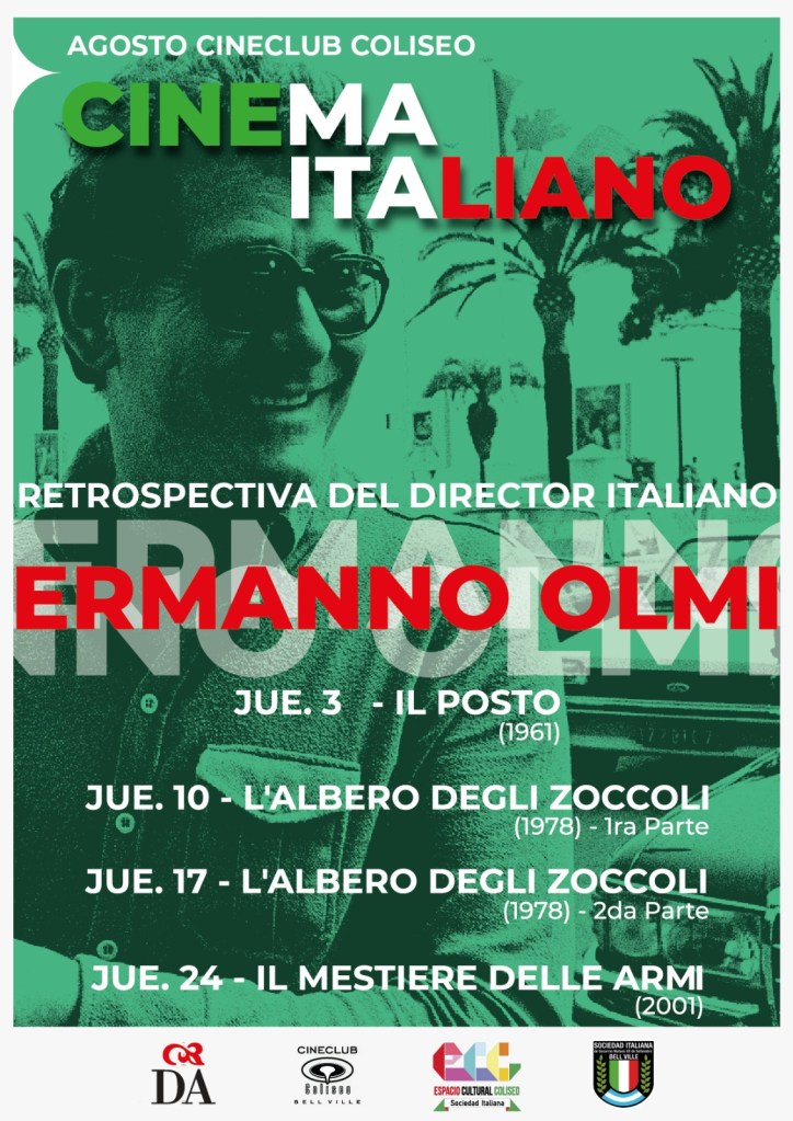 El jueves 3 de agosto se proyecta “El empleo” (1961), el 10 de agosto la primera parte de “El árbol de los zuecos” (1978) y el 17 de agosto la segunda parte de dicha película. El ciclo finaliza el jueves 24 con “El oficio de las armas” (2001).