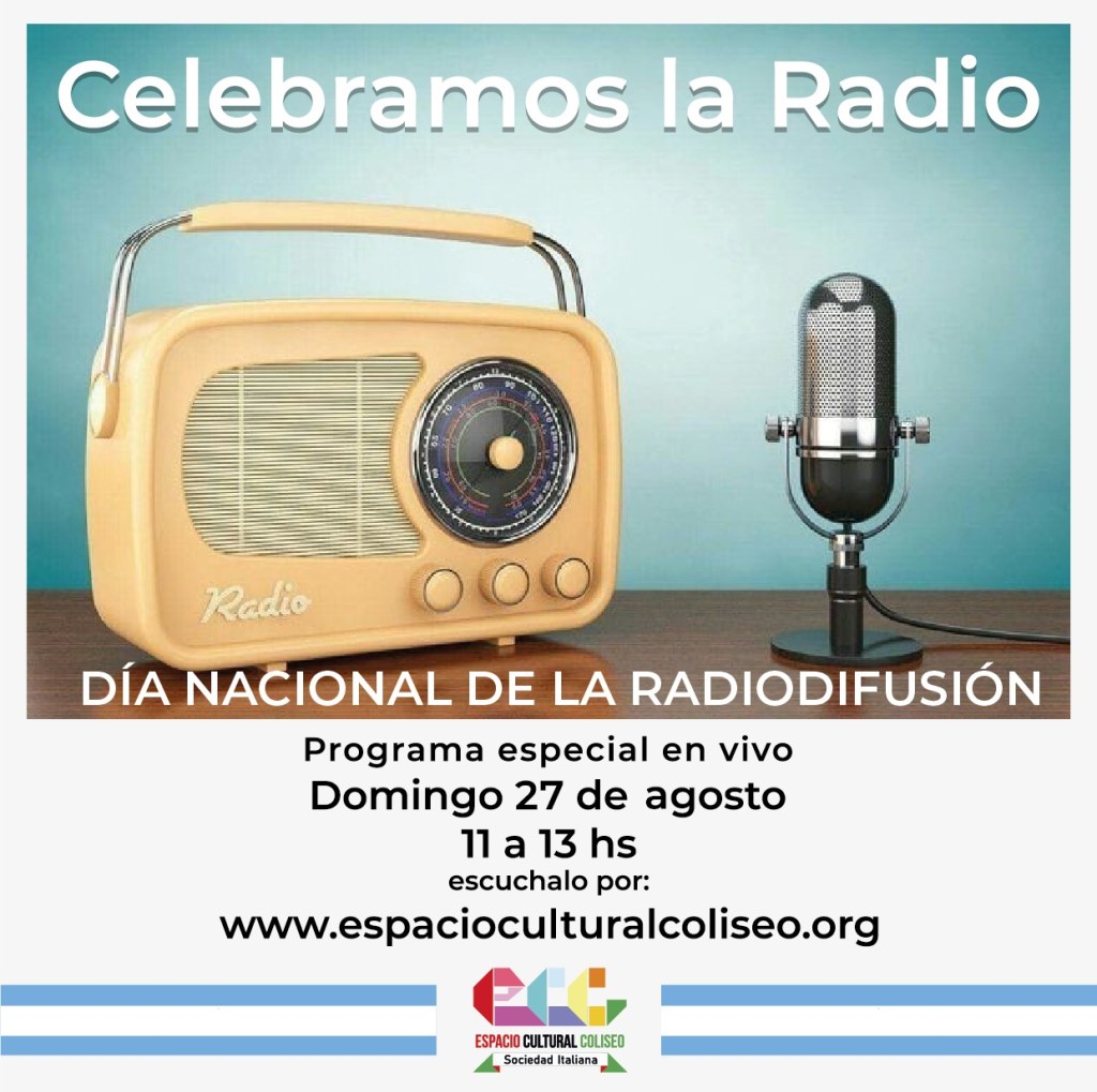 Desde los estudios de nuestra radio, este domingo 27 de agosto de 11 a 13, realizaremos un programa especial en vivo para celebrar el Día Nacional de la Radiodifusión.