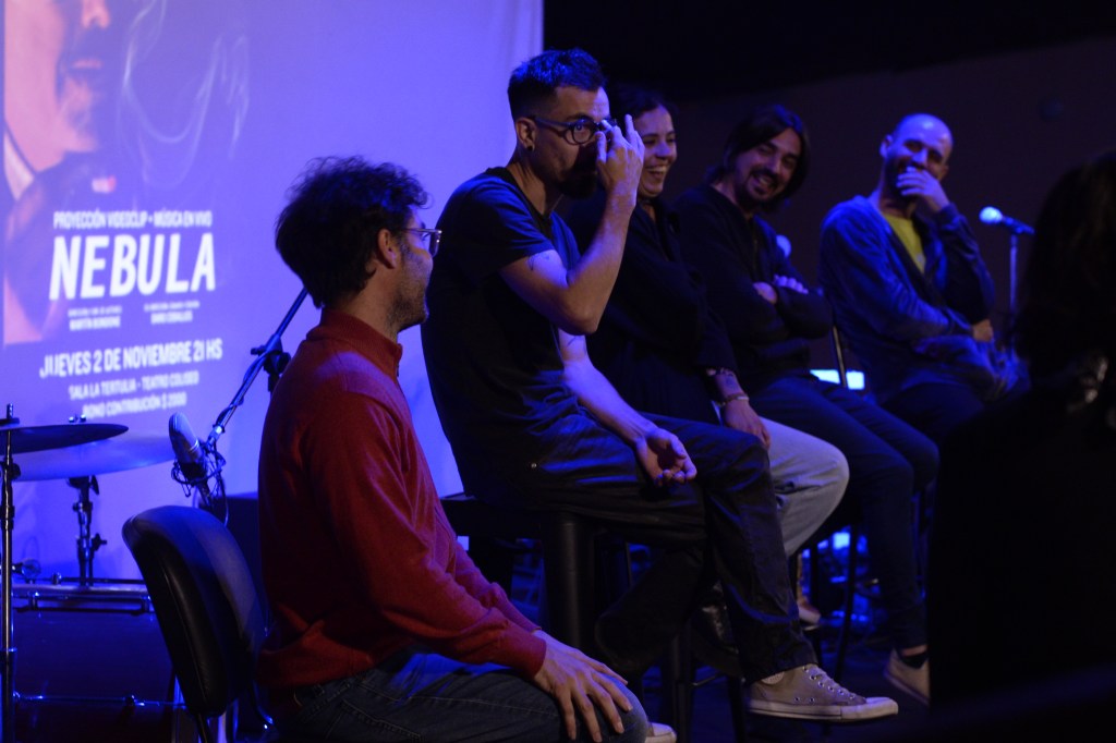 La historia contada en la poderosa creación de Nebula motivó algunas preguntas que sirvieron para que los artistas compartan inspiraciones, anécdotas y modos de producción que estuvieron en la génesis del tema musical y en la posterior realización del videoclip. Dialogaron con el público, además de los tres músicos, el director del cortometraje Martín Bondone y Lali y Lala de Fiera Arte Sustentable, encargadas del vestuario.