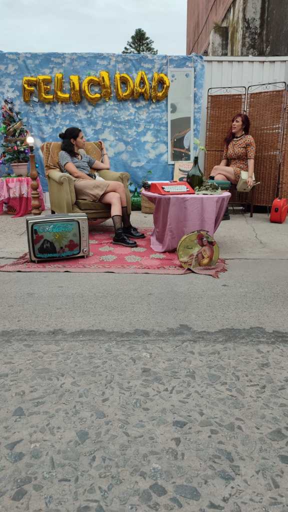 Frente al Coliseo y sobre la calle, se instaló el espacio escénico donde actuaron alumnes de distintos talleres que funcionan en el teatro, como el de danzas que coordina Julieta Neira, el taller de canto que dirige Bárbara Bomone, el taller de teatro de adolescentes que dirige Raquel Viscovig y el taller “Un tango más” del profesor Nahuel Montenegro.
