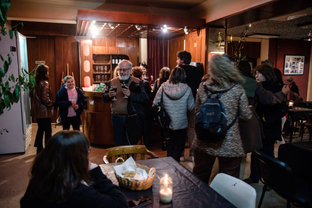 El aquelarre siguiĂł en el hall del Teatro compartiendo el servicio de bar y celebrando un nuevo encuentro artĂstico que contĂł con la producciĂłn general del Espacio Cultural Coliseo, sonido de Ezequiel González y luces de Lucas Viscovig.