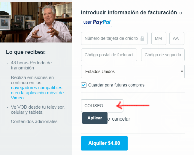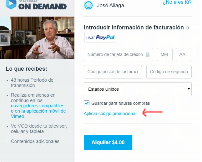 3) A continuación verás un cartel que te pide datos de tu tarjeta. NO ES NECESARIO LLENAR ESTE PASO. Solamente tenés que hacer click en «Aplicar código promocional» (ubicado debajo, con letras celestes)