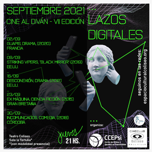 Finaliza el ciclo Cine al Diván programado en el Cineclub Coliseo junto al CCEPsi (Centro de clínica y estudios psicoanalíticos) y que en esta edición lleva el título: «Adolescencia: Cuando pasa el temblor». En este último jueves del mes se proyectará la película argentina Sublime.