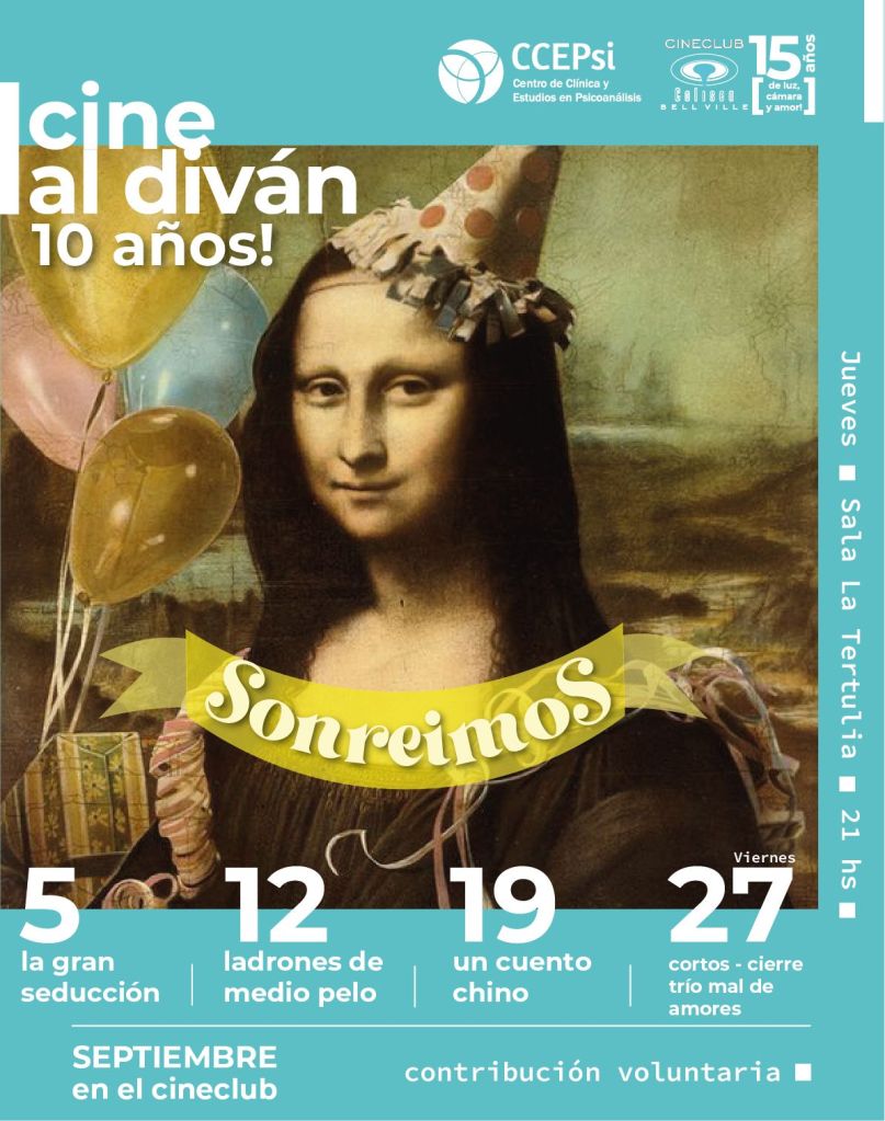 Durante el mes de septiembre, el Cineclub Coliseo presenta el ciclo “Cine al diván” que programa conjuntamente con el CCEPsi (Centro de Clínica y Estudios en Psicoanálisis) y que este año llega a su décima edición ininterrumpida.