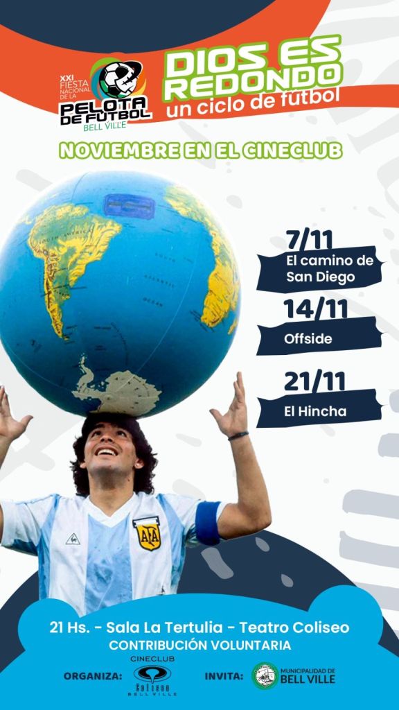 En noviembre nos sumamos a la XXI Fiesta Nacional de la Pelota de Fútbol que se realiza en nuestra ciudad y los invitamos a compartir «Dios es redondo», un ciclo de fútbol. La actividad fue incluida en el cronograma oficial de actividades que forman parte de esta Fiesta, organizada desde la Municipalidad de Bell Ville.